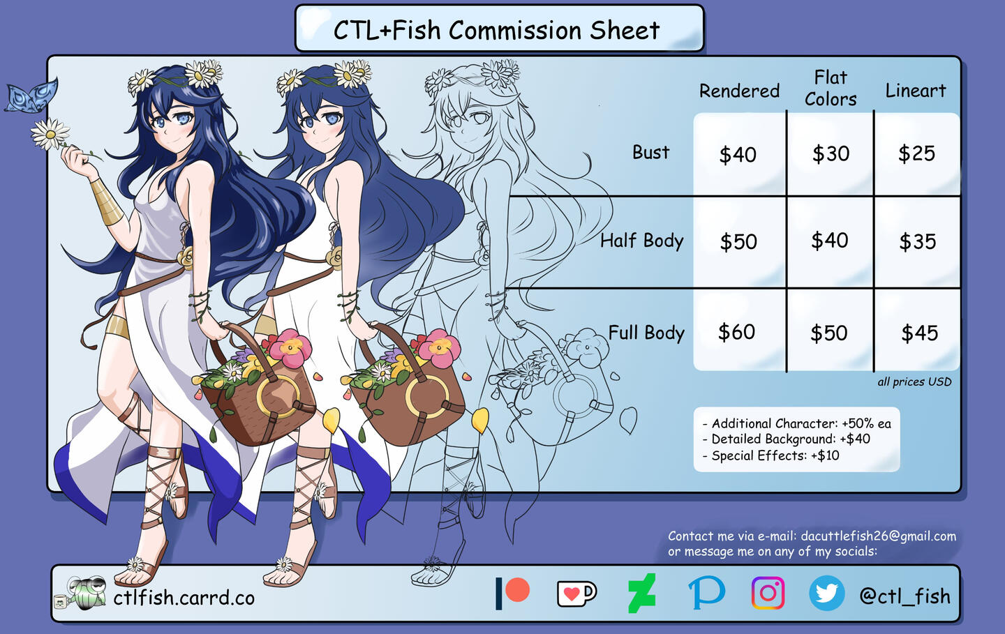 If you would like to commission me, all the information you need can be found in my Commission Info Sheet